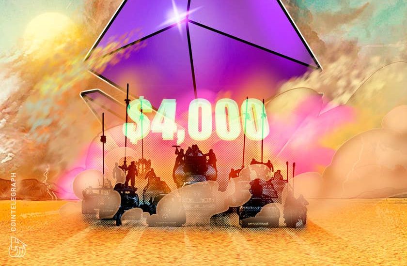 Ether (ETH) returned to $4,000 on Sept. 3 for the first time since May as a solid week of gains culminated in a major price milestone.